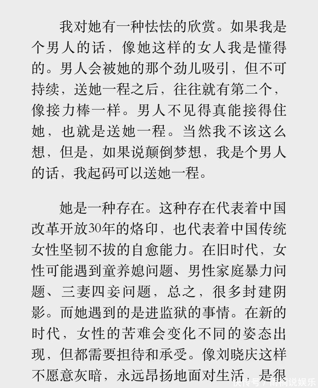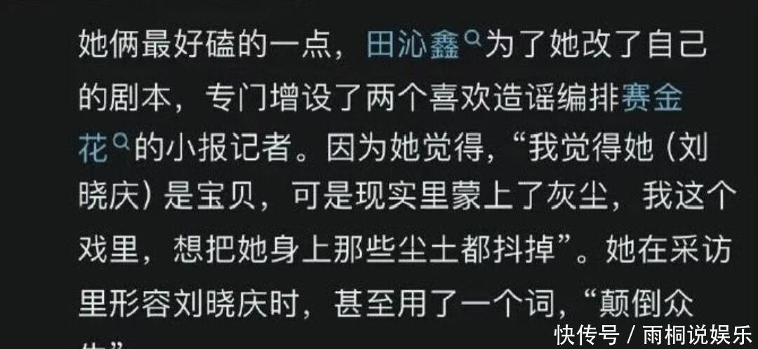 “我以为她是宝贝,然则履行里蒙上了灰尘,我这个戏里,想把她身上那些尘土皆抖掉。”而描画刘晓庆,她只用了一次“倒置众生”。